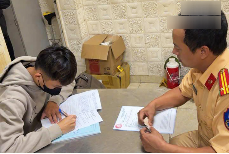 Tài xế Nguyễn Tuấn H. bị CSGT lập biên bản. Ảnh: CACC