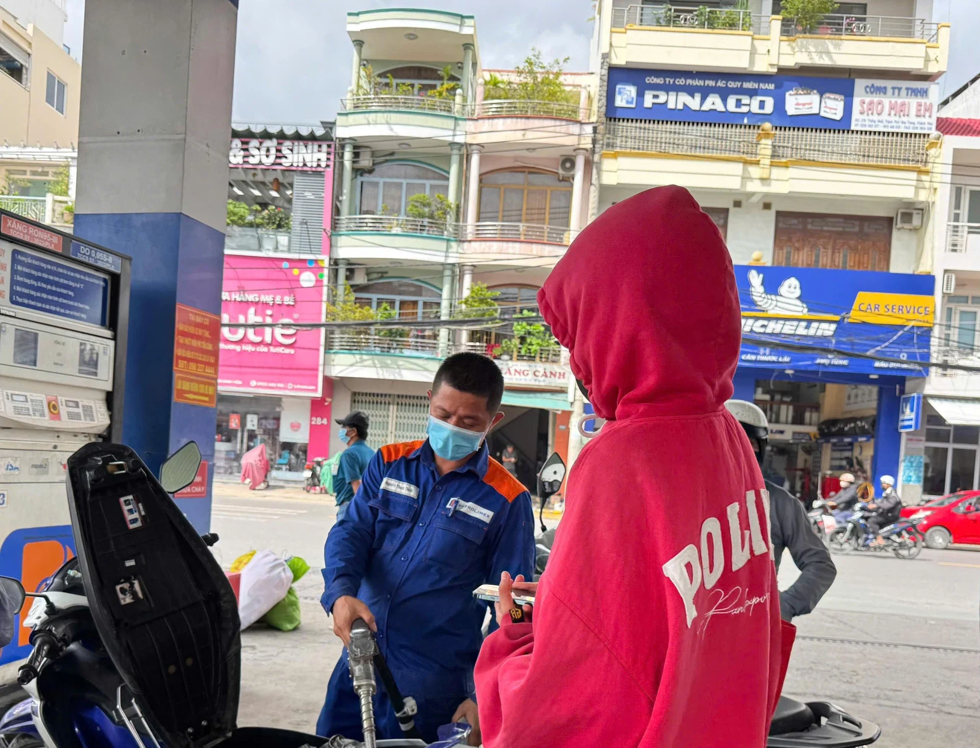 Người dân đổ xăng tại một cây xăng ở phường Tây Nha Trang.
