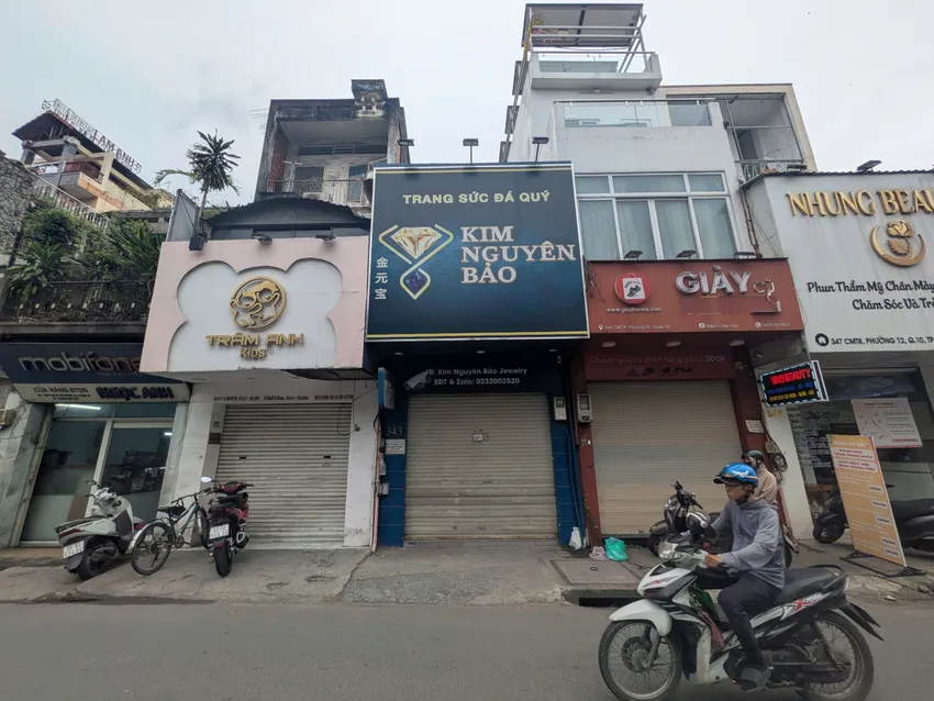 Cửa hàng Kim Nguyên Bảo trên đường CMT8 hiện khóa cửa, treo bảng “cho thuê”.