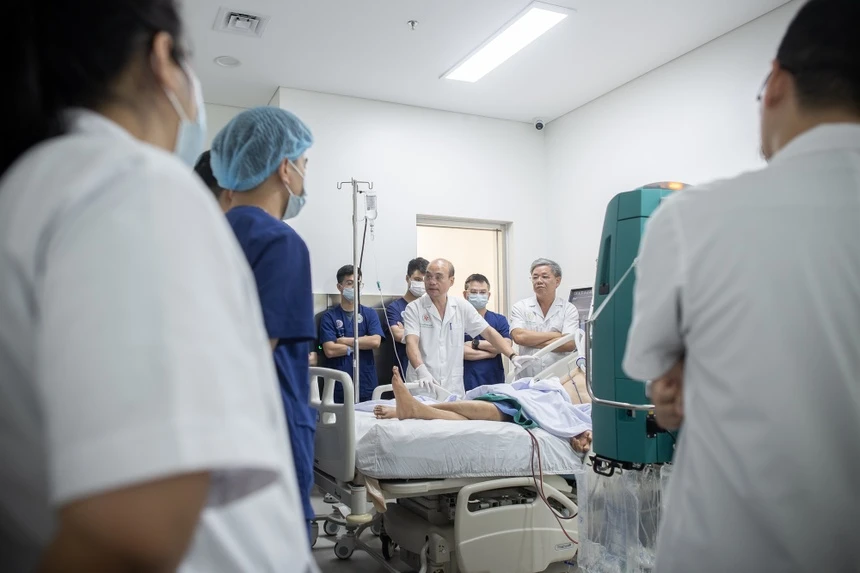 Bác sĩ Bệnh viện Trung ương Quân đội 108 thăm khám cho bệnh nhân. Ảnh: Việt Linh.