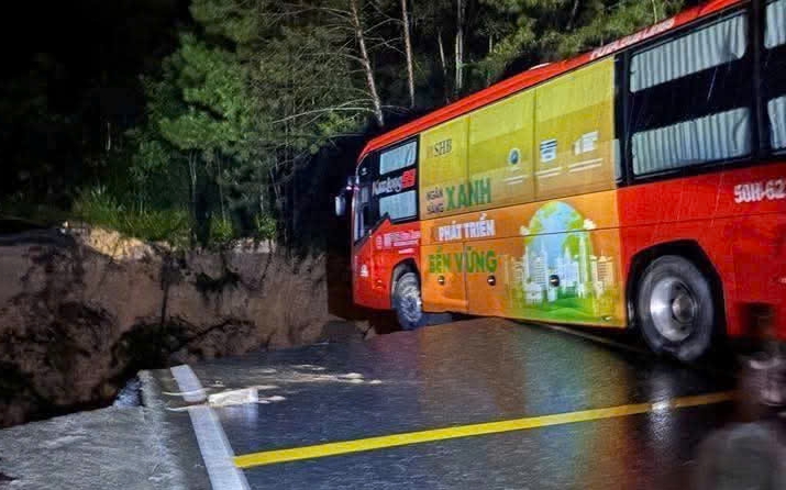 Thời điểm xảy ra vụ việc, một xe khách 40 chỗ của hãng Phương Trang đang lưu thông đến đoạn đường này. May mắn tài xế đã kịp dừng phương tiện khi một phần đầu xe và 2 bánh trước xe đã vào đến vực sạt lở.